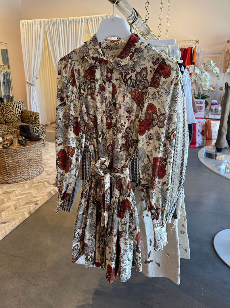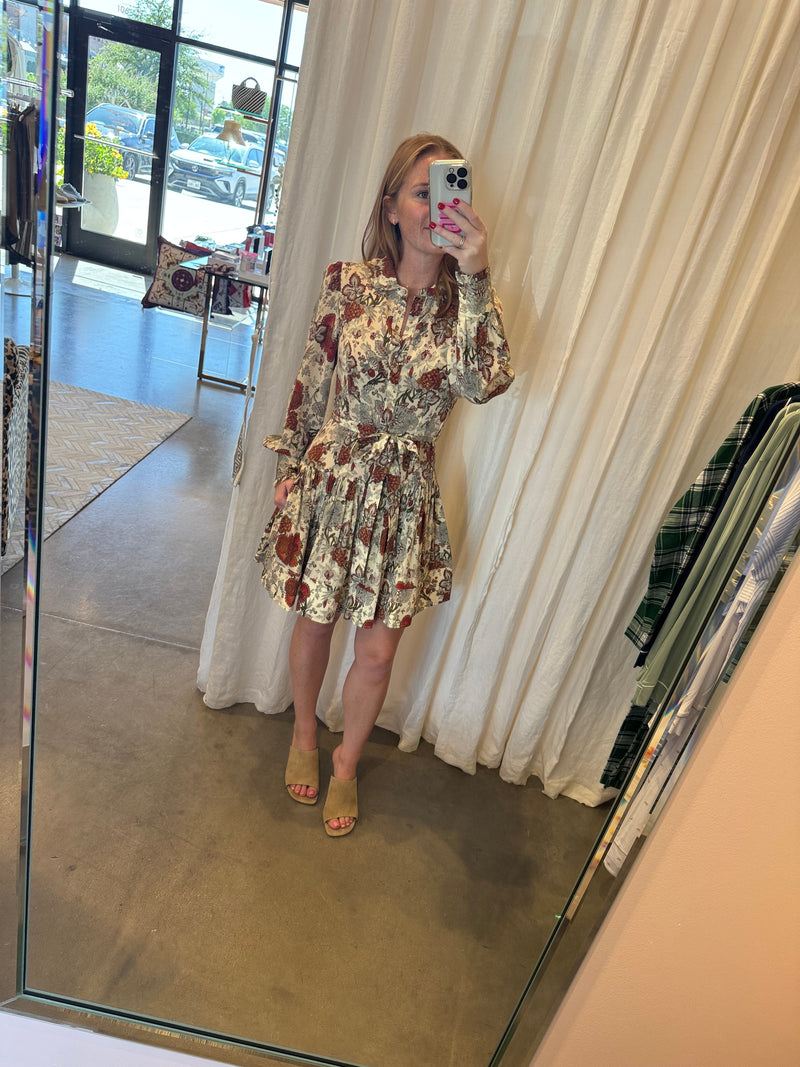 Simona Silk Long Sleeve Mini Dress in Wintergarden