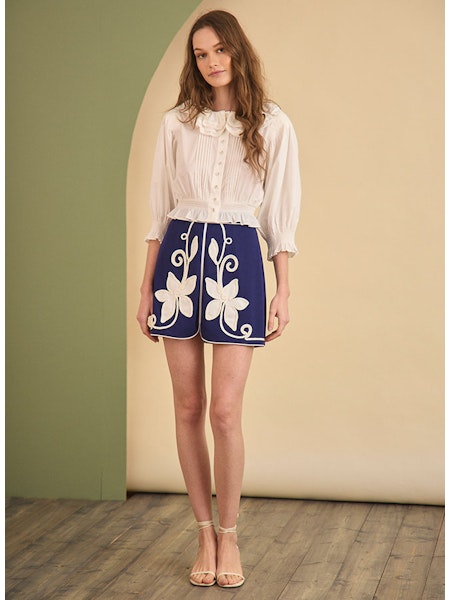 Dottie Mini Skirt brings vintage-inspired whimsy to a modern silhouette. Featuring a flattering A-line shape, fitted waist, and back zipper closure, this style is all about charm and ease. The tulip hem adds a soft, feminine touch, while delicate appliqué detailing speaks to the thoughtful craftsmanship we're known for.
