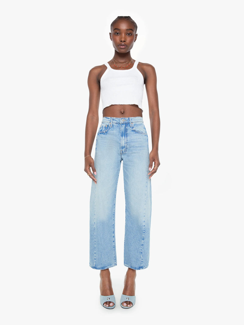 A super high-waisted jean with a wide, curved leg, an ankle-length inseam and a clean hem. Cut from 100% SUPERIOR denim, This Is How I Roll is a light blue wash with whiskering and fading at the knee.