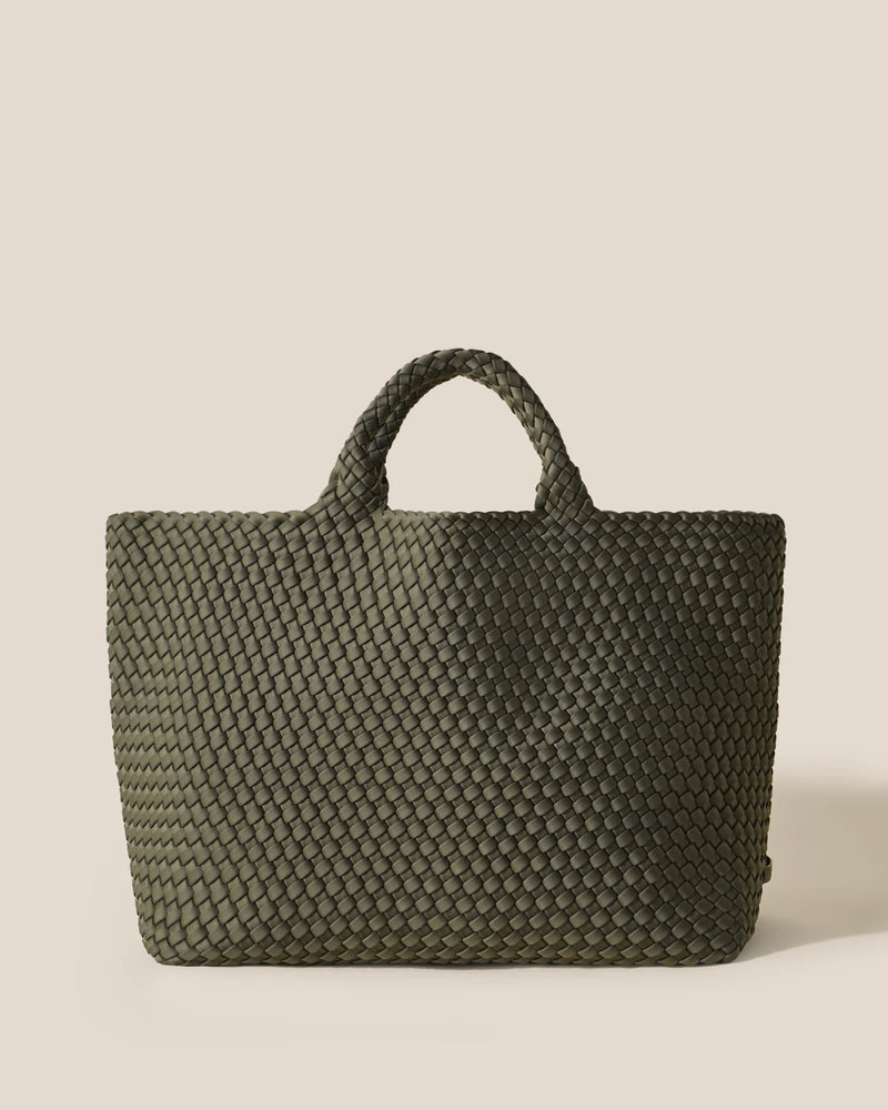 Handwoven neoprene in true olive green The St. Barths Large Tote is a lightweight and versatile classic, ideal for travel and the beach.